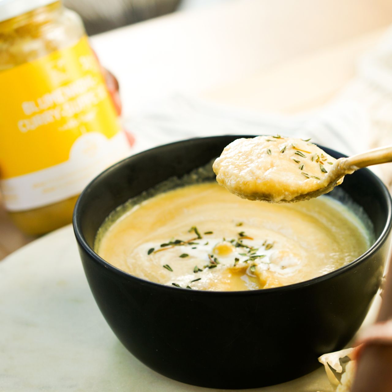 Unsere Blumenkohl-Curry-Suppe ist der ideale Begleiter für Deinen Alltag. Probier’s aus und erlebe, wie lecker Leichtigkeit** sein kann!